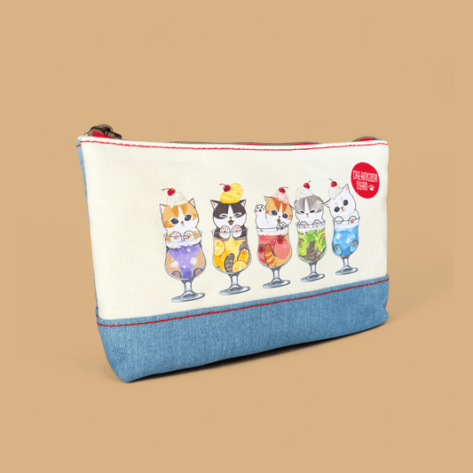 Mofusand Denim Flat Pouch - Cream Soda Nyan