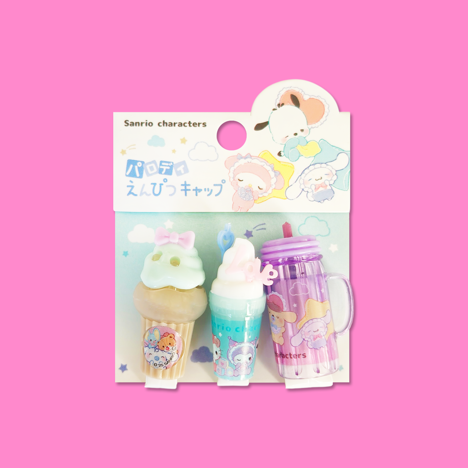Features 3 adorable Sanrio Babies themed pencil cap designs.