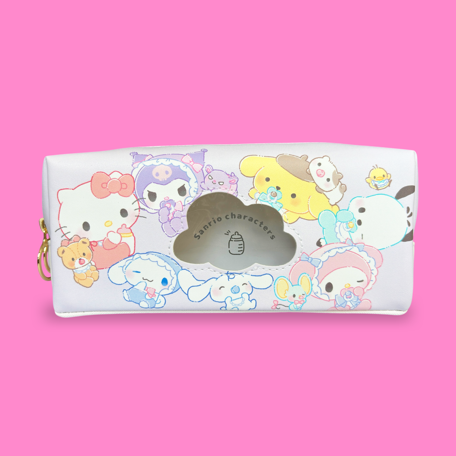 A unique home for your stationery, this pastel Sanrio Babies Twin Zipper Pencil Case features a cloud-shaped transparent window on the front alongside two large zipper compartments for storing your things. Complete with gold charms on the zips and gorgeous artwork of the Sanrio babies.