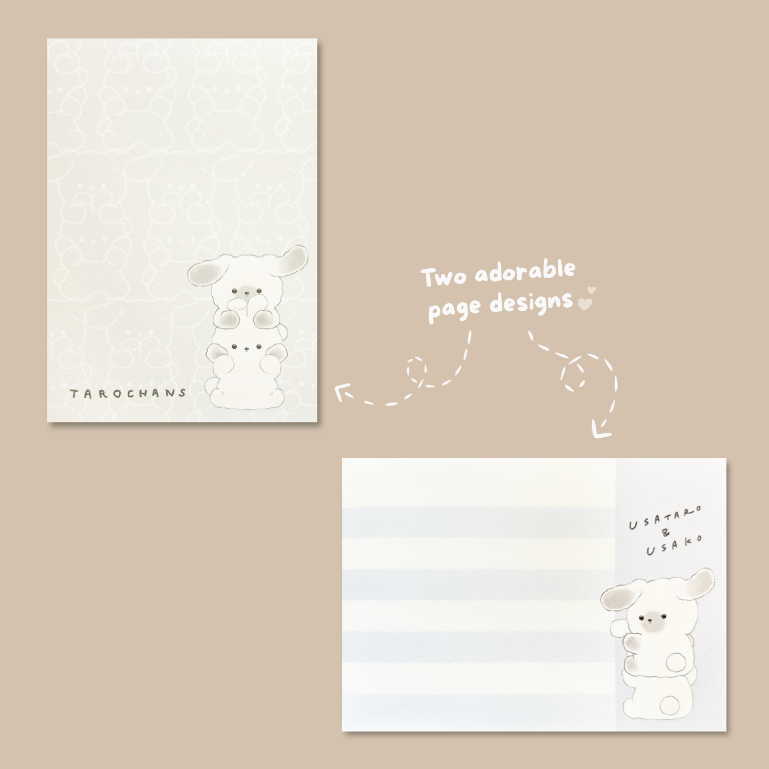 Leave your notes with the cutest of furry friends with the Tarochans Mini Memo! Adorned with adorable illustrations of the bunny duo Usataro and Usako, this memo features two page designs to jot your notes down on.